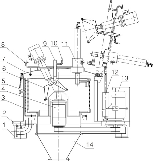 | 11.刮刀总成 | 12.翻盖油缸 |